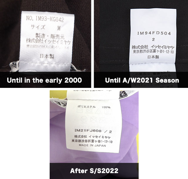 Also you can distinguish the era of ISSEY MIYAKE items with the brand label.